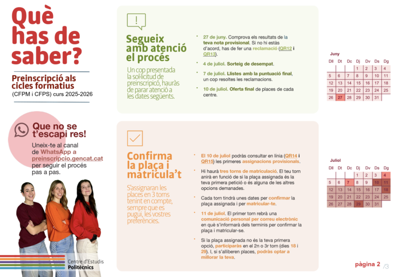 - CFGS Educació Infantil (1 línia, 30 places vacants)