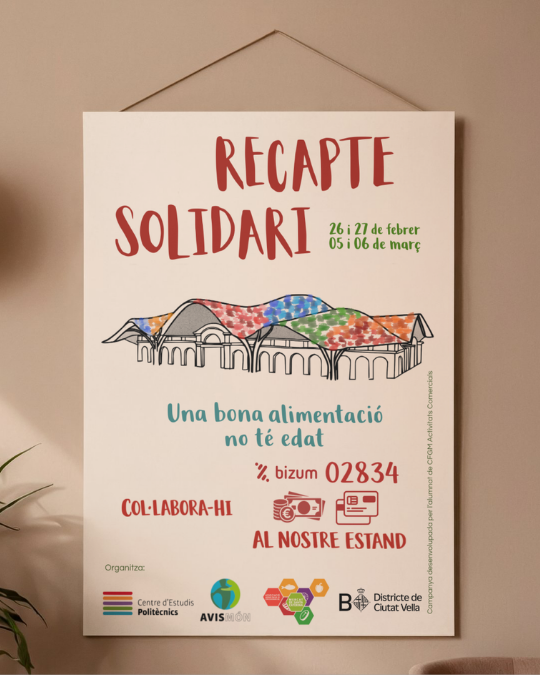 Els pròxims passos ens portaran als dies de recapte al Mercat de Santa Caterina els dies 26 i 27 de febrer i 5 i 6 de març, on l’alumnat participarà activament en la jornada solidària, encarregant-se de la recollida de diners que es destinaran a la compra d’aliments i productes frescos per a persones grans en situació de vulnerabilitat.
