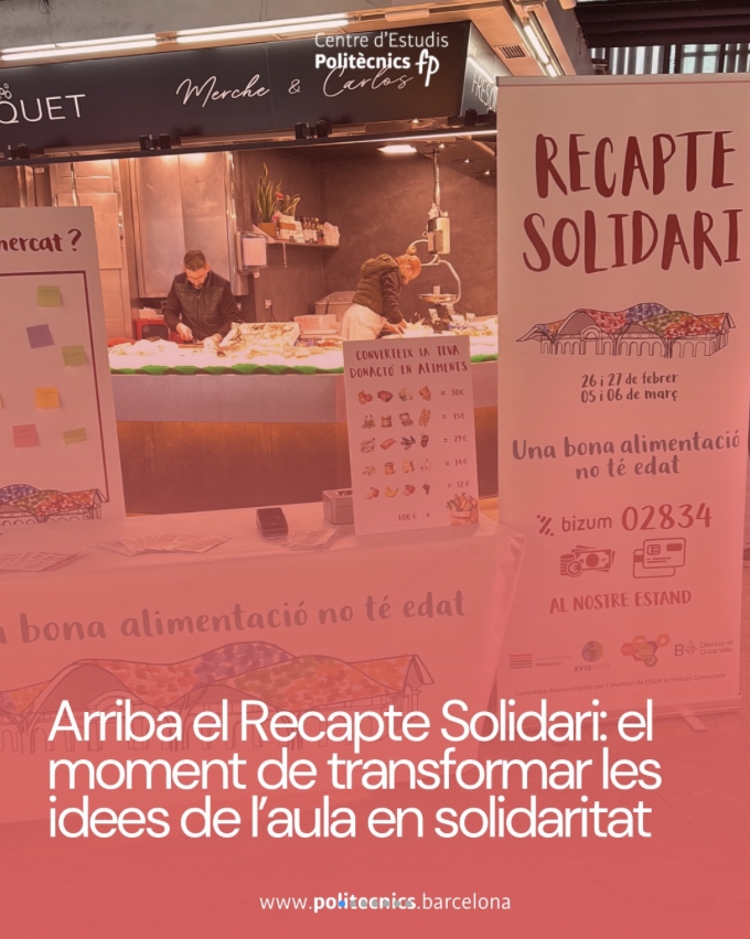 Si el comercio tuviera un rostro humano y cercano, tendría la forma del proyecto «Recapte Solidari amb Avismón y el Mercado de Santa Caterina» . Aquí, 52 alumnos del ciclo de Actividades Comerciales han descubierto que su profesión no va a vender productos, sino de tejer redes de apoyo .